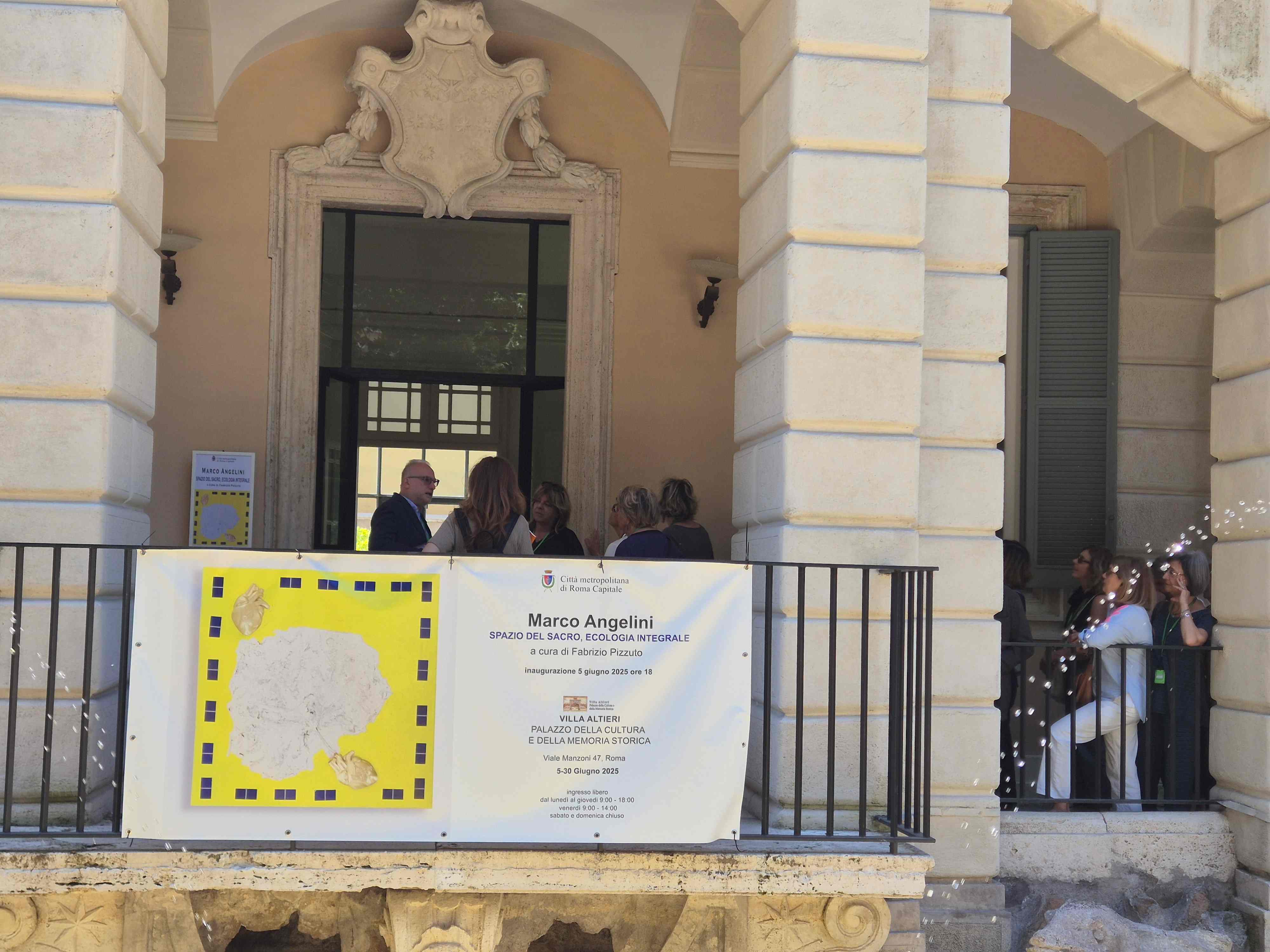 W czwartek 5 czerwca 2025 roku o godzinie 18:00 w przestrzeniach Villa Altieri – Palazzo della Cultura e della Memoria Storica (Pałac Kultury i Pamięci Historycznej) w Rzymie zostanie otwarta wystawa indywidualna Marco Angeliniego zatytułowana Przestrzeń Sacrum, Ekologia Integralna (Spazio del Sacro, Ecologia Integrale), kuratorowana przez Fabrizio Pizzuto (asystentka kuratora: Irina Babayan), uzupełniona tekstami krytycznymi autorstwa Claudio Noviello, Marii Laury Perilli, Jana Kozaczuka. Patronem wystawy jest Città Metropolitana di Roma Capitale (Miasta Metropolitalnego Rzym – Stolica).